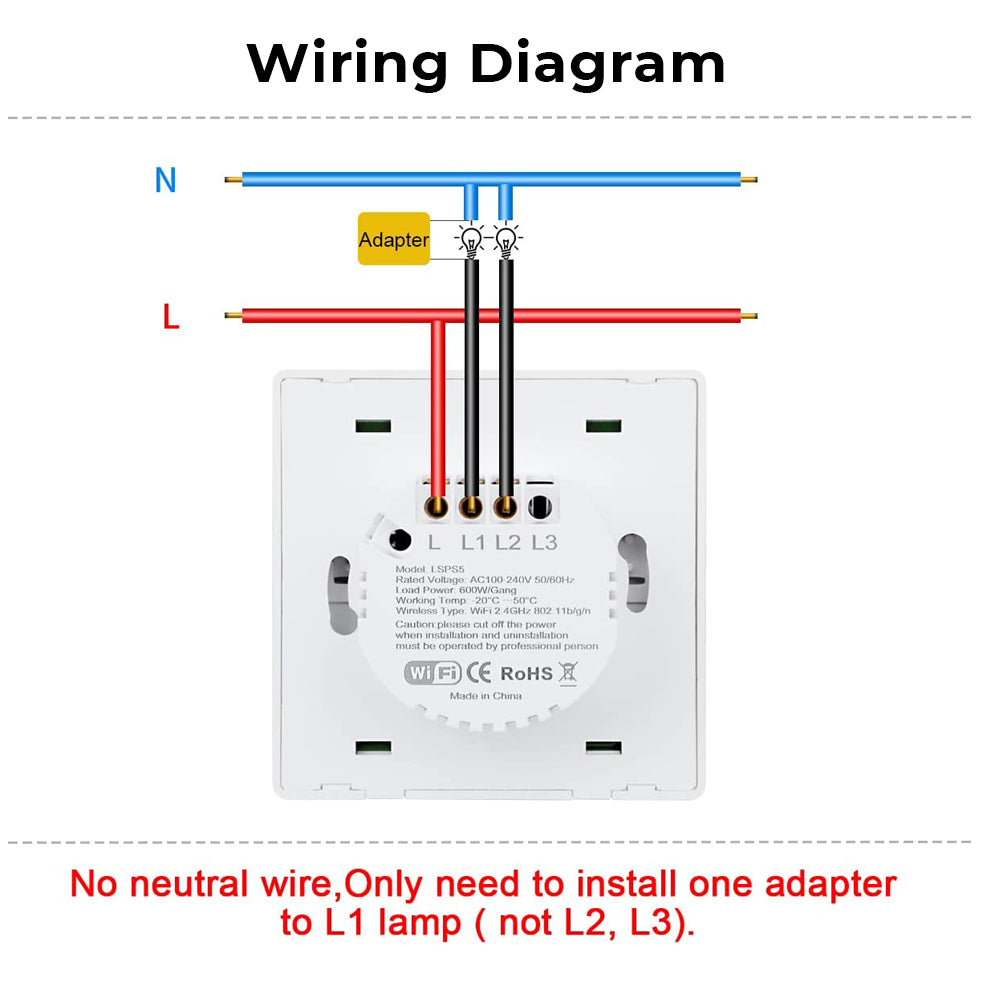 Smart Light Switch, No Neutral Wire Required, Works with Alexa, Google Home Device, ENERJSMART App, Set Timer, Push Button with LED Indicator, 600W/Gang, Also use it as a 2-Way Switch with our ECO Series Wireless Kinetic Switch.